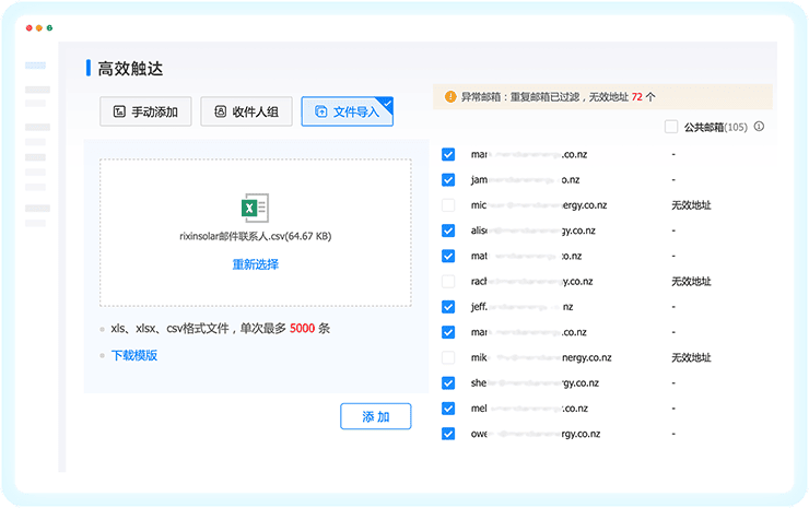 易币付(中国)外贸通内置自动发送系统,根据需求智能分析投递线路,抵达率达90%以上;联系人管理、重要度匹配、无效邮箱过滤等功能,触达、跟进更高效